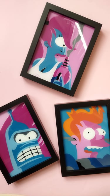 Trabajo con una paleta cromativa amplia y colorida y herramientas manuales y artesanales para conseguir ilustraciones unicas y personalizadas.